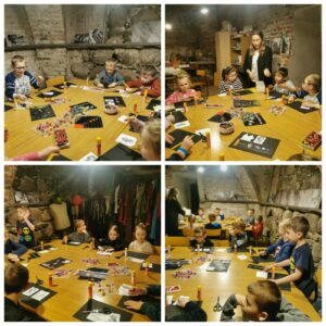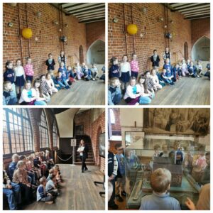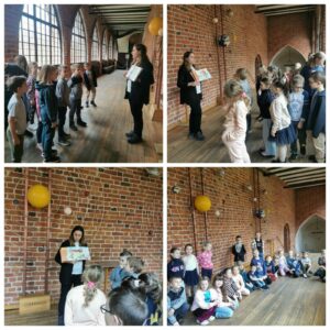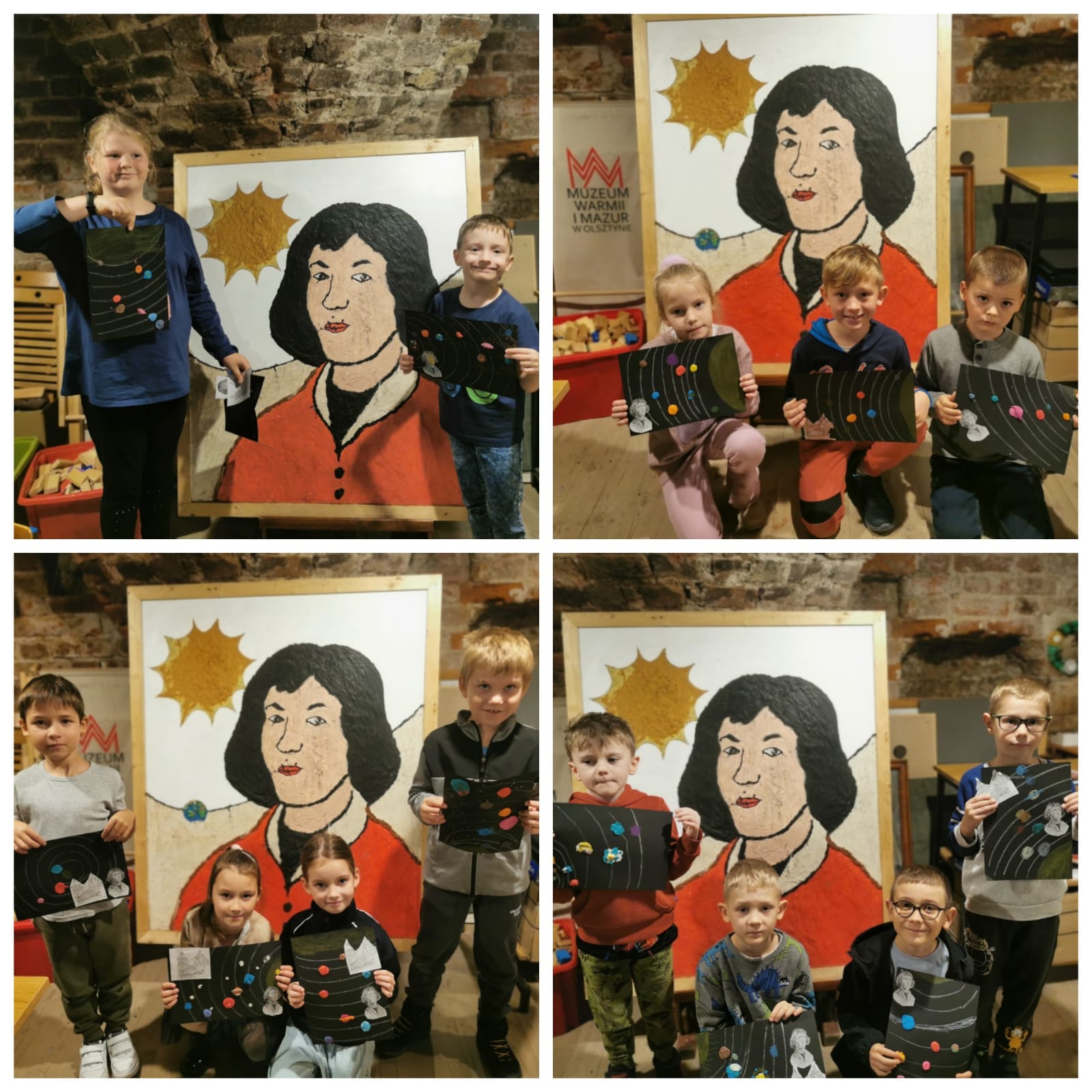 Jesiennym krokiem podążyliśmy tym razem na spotkanie z Mikołajem Kopernikiem na Zamku Olsztyńskim. Zwiedziliśmy jego komnatę mieszkalną, krużganek z tablicą astronomiczną wykonaną przez Wielkiego Uczonego. Obejrzeliśmy film o Układzie Słonecznym. Po wędrówce salami Muzeum Warmii i Mazur wzięliśmy udział w warsztatach. Poprzez zabawę z układem planetarnym każdy z nas stworzył układ słoneczny z plasteliny i pasteli. Powstała piękna galeria prac!
